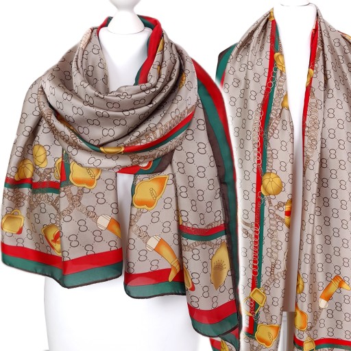 - duże wymiary chusty pozwalają owinąć modnie szyję, puścić luźno w dół lub zarzucić na ramiona i plecy.