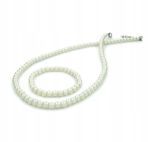 Ten komplet- naszyjnik i bransoletka wykonany jest z najlepszej sztucznej perły- szklanej. Barwą zbliżona jest do naturalnych pereł - delikatne ecru.