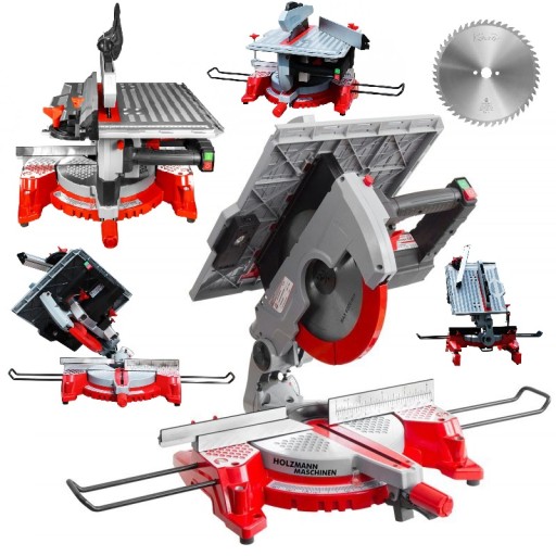 - Została wyposażona w dwie funkcje - może być piłą ukośnicą bądź piłą stołową, obrotowy stół, uchylną tarczę, silnik wolnostartujący z hamulcem.
