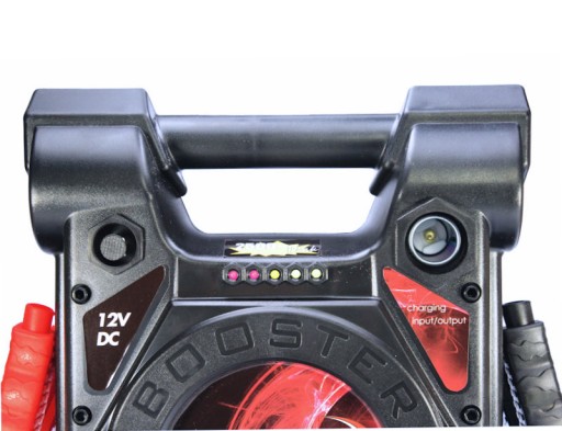 Przenośny akumulator do wspomagania rozruchu samochodów osobowych(silniki benzynowe, silniki diesla). Zasilanie 230V, napięcie rozruchu 12V, prąd wyjściowy 850A, prąd rozruchu 2500A.
