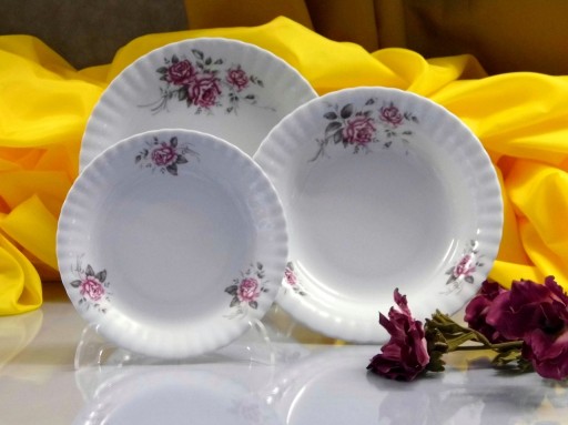 - ETAŻERKA 3-CZĘŚCIOWA : 1 kpl. 1 talerz płytki 24 cm, 1 talerz płytki 19 cm, 1 talerz płytki 17 cm,