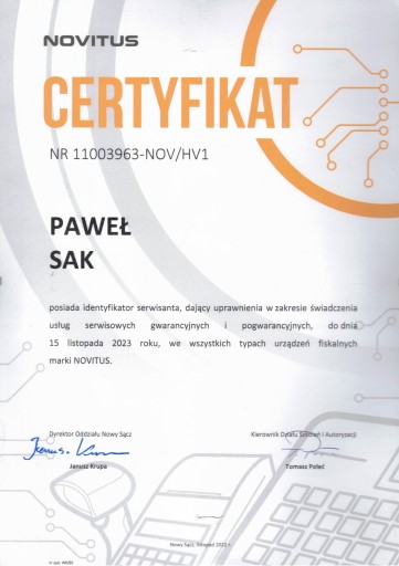 Po zakupie będziemy się kontaktowali w celu ustalenia dalszych szczegółów (fiskalizacja, wygląd nagłówka paragonu itp.).