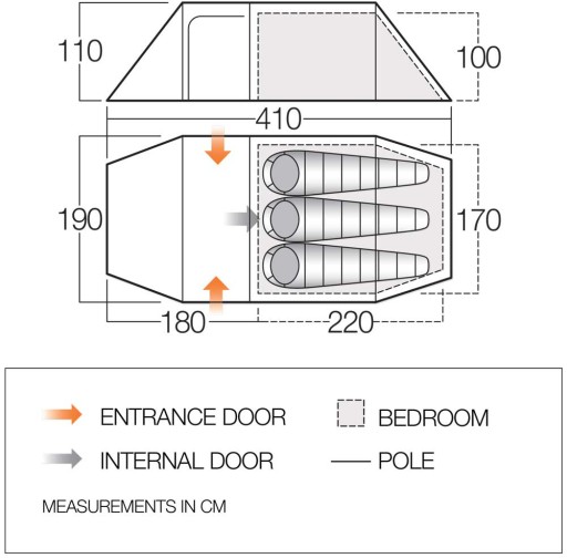 3-osobowy namiot trekkingowy VANGO Scafell 300+ ma prostą konstrukcję tunelową, z dwoma identycznymi pałąkami dla ułatwienia użytkowania. Szybki i łatwy do rozłożenia, tropik ProTex® Shield, system stabilizujący TBS® II oraz pałąki Gothic Arch zapewniają dodatkową wytrzymałość, chroniąc przed silną i zmienną pogodą. Niska waga spodoba się miłośnikom trekkingu, a duża wysokość nad głową i przedsionek sprawiają, że jest to bardzo wygodny w użytkowaniu namiot.