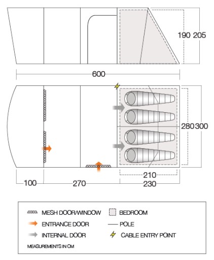 - Vango AirZone - panele wentylacyjne na wysokim i niskim poziomie zapewniają komfortowy przepływ powietrza w namiocie. Cyrkulacja powietrza jest niezbędna, aby ograniczyć kondensację