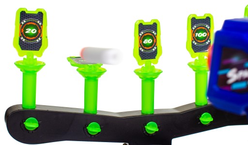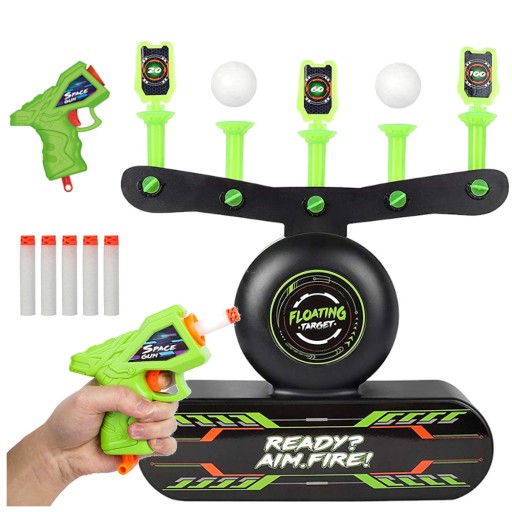 Tarcza pozwala bawić się na 2 sposoby - można strzelać do ustawionych tarcz lub do unoszących się na podmuchu powietrza piłeczek.
