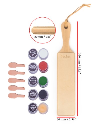 Двусторонний кожаный ремень BACHER для полировки ножей с набором полиролей.