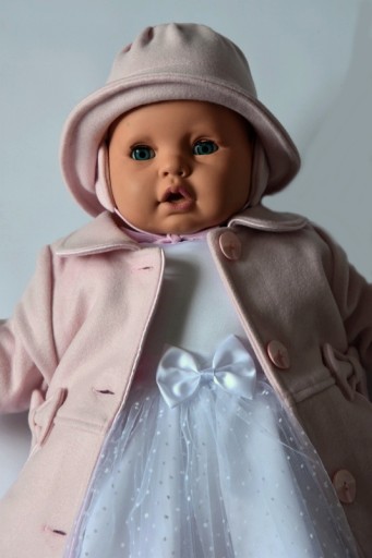 PŁASZCZ Z FLAUSZU + kapelusz do chrztu, - rozmiar 80