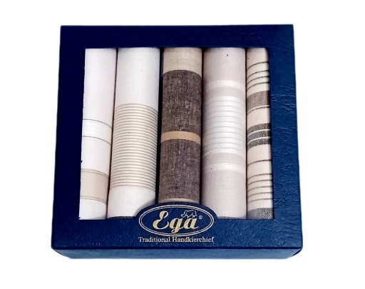Każda z tych wyjątkowych męskich chusteczek do nosa została uszyta z delikatnej bawełny. Wzór przywodzi na myśl lniany materiał. Każdy z produktów dostępnych w zestawie jest utrzymany w jednakowej gamie kolorystycznej, stanowi więc ciekawą alternatywę dla pozostałych dodatków. Producent chusteczek umieścił je w eleganckim pudełku, w którym można je przechowywać.