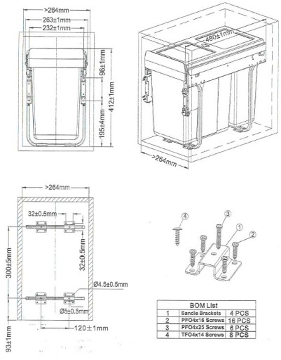 3 Kosza × 10 litrów, Mocowanie Dolne