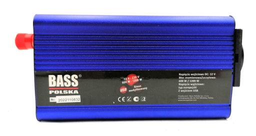 Przetwornica Bass Polska została wyposażona w gniazdo sieciowe, do którego można podłączyć urządzenia elektryczne oraz wejście USB do ładowania smartphona, czy tableta.