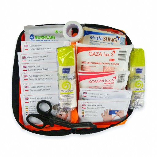 Jest to najbardziej uniwersalny, mobilny i wygodny moduł wśród naszych Apteczek Modułowych systemu TRAUMA KIT, który umożliwia zabezpieczenie bardzo wielu stanów zagrożenia życia. Zawiera bardzo zróżnicowany asortyment, w tym m.in. rzadko spotykane w innych apteczkach plastry do zamykania ran (strip).