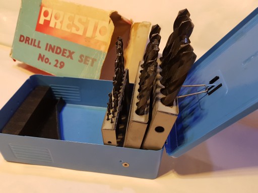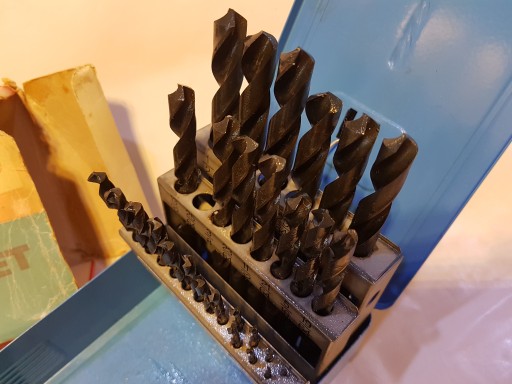 Sprzedam zestaw wierteł calowych marki Presto w oryginalnym, metalowym pudełku. Brakuje jednego wiertła numer 25/64 czyli 9,92 mm. Zabezpieczone przed korozją preparatem Fuchs Anticorit CPX-3373. Stan i szczegóły na zdjęciach.