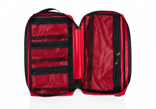 - kieszeń z miejscem na kołnierze ortopedyczne zapinana na suwak oraz 1 duża kieszeń na materiały opatrunkowe