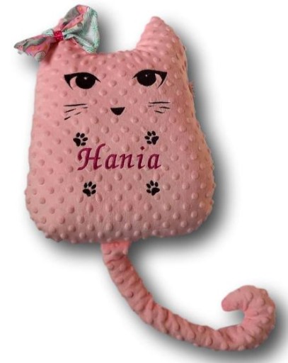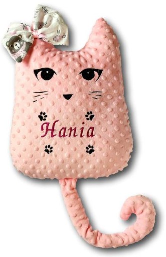 Poduszka dekoracyjna kotek z imieniem i metryczką oraz długim ogonem :)