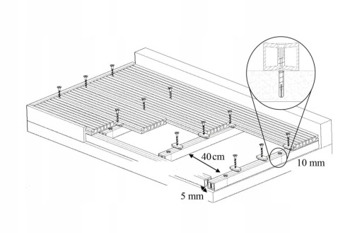 - Pamiętajmy o zachowaniu przerwy pomiędzy deskami na około 2mm.