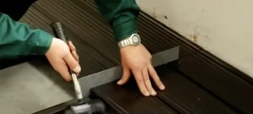 - Powierzchnie wykańczamy listwą wykończeniową "L". Mocujemy ją do legarów za pomocą wkrętów.