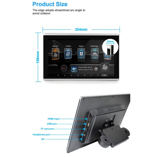 1. Obsługa WiFi 2.4G/5GHz: dla odtwarzacza wideo montowanego za zagłówkiem samochodu z systemem Android 9.0, łatwo połącz się z hotspotami Wi-Fi lub telefonami w samochodzie. Bardzo wygodne dla ciebie.