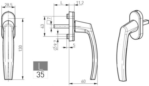 BIAŁA KLAMKA PCV trzpień 35mm