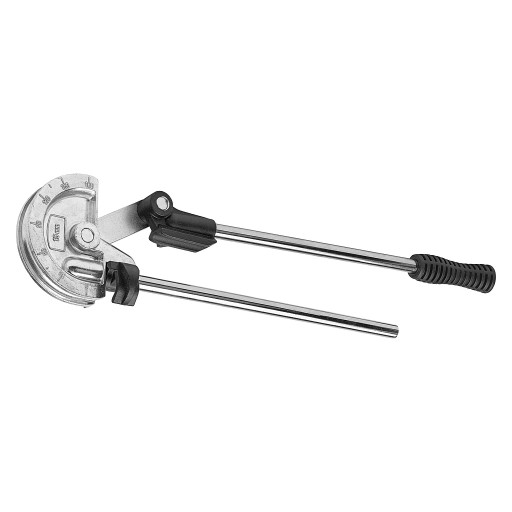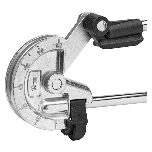 Wysokiej jakości giętarka z wyraźną podziałką ułatwia uzyskiwanie dokładnych zgięć. To ręczne narzędzie marki Meec Tools służy do zginania wyżarzanych rur 15 mm z miedzi, aluminium itp. pod kątem do 180°.