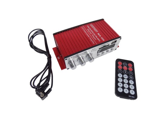 Wzmacniacz posiada wejście USB i SD dzięki czemu odtwarzać możemy pliki z muzyką w formacie mp3.