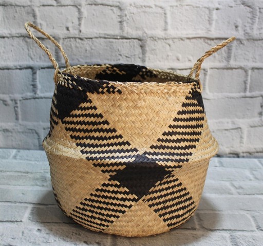 Dekoracyjny kosz pleciony ręcznie z trawy morskiej z uszami. Kosz można dowolnie ułożyć – z uszami do góry lub do dołu, wówczas tworzy praktyczną misę. Idealny do aranżacji wnętrz.