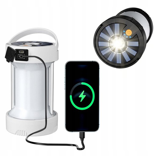 - Latarnia kempingowa może być również ładowana jako power bank przez port USB telefonu komórkowego lub innych urządzeń.