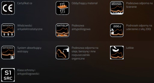 - podnosek stalowy wytrzymujący uderzenie do 200J,
