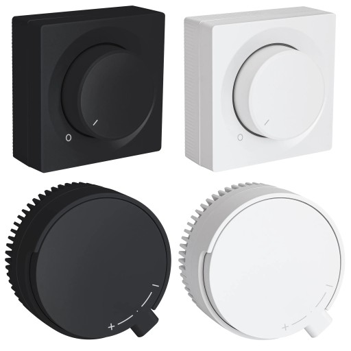 Elektroniczny regulator obrotów (ERO) natynkowy w kolorze białym o kształcie okrągłym