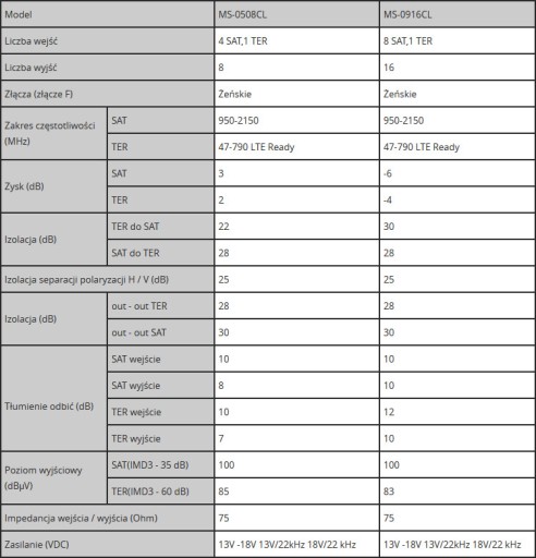 Parametry wyróżniające multisiwtche Spacetronik na tle konkurencji - izolacja w torach SAT i TV