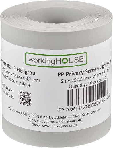 Nasze paski prywatności PP mają wysokość 19 cm i ok. 0,7 mm grubości, dzięki czemu można go łatwo zainstalować. Dostarczanych jest 10 pasków po 2,52 m każdy.