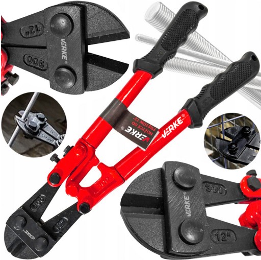 Profesjonalne nożyce do cięcia stalowych prętów, drutów i łańcuchów. Hartowane stalowe ostrza gwarantują szybkie cięcie. Ergonomiczne wyprofilowane gumowane rękojeści pozwalają na pewny uchwyt narzędzia.