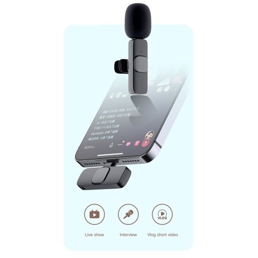 Bezprzewodowy mikrofon krawatowy redukcja szumów głośnomówiący Clip-on Lapel Mini mikrofon pojemnościowy do laptopa Smartphone Cechy:1. Wygodny w użyciu: bezprzewodowy pozwala poruszać się bez odłączania tego mikrofonu. Klip klapy pomaga naprawić ten mikrofon na kołnierzu, wygodny do nagrywania.2. Automatyczne parowanie: mikrofony bezprzewodowe do telefonu komórkowego są profesjonalne i wyjątkowe. Będą się automatycznie łączyć, nie trzeba pobierać aplikacji i sieci bezprzewodowej. Pożegnaj się z niechlujnymi kablami, spraw, aby twój przekaz na żywo był bardziej zrelaksowany i przyjemny!3. Przenośny i trwały: Clip on microphone wbudowana bateria, że mikrofon telefonu komórkowego może nagrywać w sposób ciągły przez okres do 10 godzin, nie wymaga zewnętrznej baterii, jest wyposażony w port ładowania. Nieoczekiwanie wykwintny i kompaktowy, prosty kształt, dzięki czemu konstrukcja z klipsem w klapie jest wygodniejsza w noszeniu.4. Inteligentna redukcja szumów: mikrofon do nagrań wbudowany układ redukcji szumów, zapewniają profesjonalne pełna częstotliwość audio 48KHz stereo CD jakości, silne zdolności zwalczania zakłóceń, skutecznego uznawania, że oryginalny dźwięk, W hałaśliwym otocz