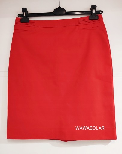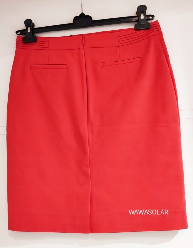 Kolor: pomarańczowy, z tyłu zapinana na zamek. Z tyłu rozporek. Fason ołówkowy. Prosta klasyczna. Całość na podszewce.