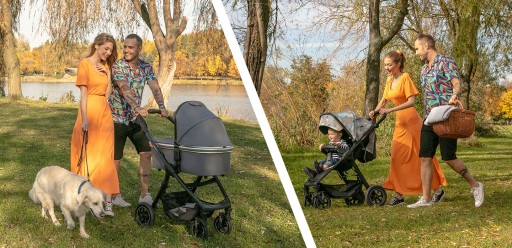 Pełnowymiarowy, całoroczny wózek spacerowy, przystosowany do każdego terenu- na pompowanych kołach, na każdą porę roku, maksymalnie wyposażony w funkcje i akcesoria.