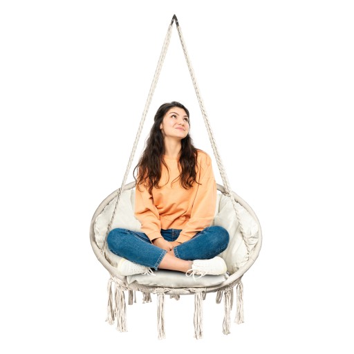 Ażurowa huśtawka ogrodowa fotel wiszący bocianie gniazdo 150 kg beżowy