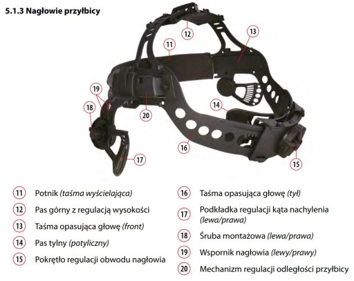 Wielowymiarowa możliwości regulowania nagłowia - dopasuj przyłbicę do swoich indywidualnych preferencji.