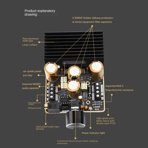 7850 płyta wzmacniacza zasilania 2X80W 2.1 kanał AB moduł wzmacniacza mocy DIY Kategoria: wzmacniacz mocy klasy AB 2.1Napięcie zasilania: DC9-18VMoc wyjściowa: maksymalnie 2x80W stereo i 1x120W czysty basImpedancja wyjściowa: można podłączyć głośniki 2/4/6/8 ohmTryb wejścia: linia audio 3.5mm/wejście terminala 3PRozmiar: 72x66mmMateriał: PCBKolor: czarnyZawartość opakowania:1 * płyta wzmacniaczaTylko powyższa zawartość opakowania, inne produkty nie są uwzględnione.Uwaga: fotografowanie światłem i różne wyświetlacze mogą spowodować, że kolor przedmiotu na zdjęciu będzie trochę inny niż rzeczywisty. Błąd pomiaru wynosi +/- 1-3cm.