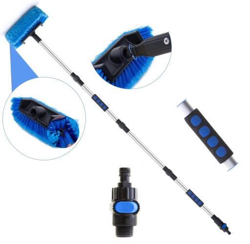 Hydroszczotka idealnie sprawdza się przy czyszczeniu wysokich samochodów ale również innych wysoko położonych powierzchni wymagających delikatnego mycia z wodą.