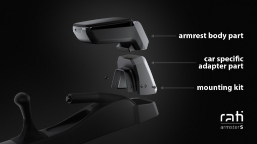 Montaż jest bardzo prosty i polega na przykręceniu podłokietnika wraz z adapterem do tunelu środkowego za pomocą wkrętów. W komplecie dostarczamy instrukcję montażu (dostępną również drogą elektroniczną) oraz wkręty mocujące. Konstrukcja zapewnia błyskawiczny samodzielny montaż przez nałożenie na konsolę środkową i dokręcenie wkrętów. Po zamontowaniu podłokietnik jest całkowicie stabilny i wygląda bardzo estetycznie.