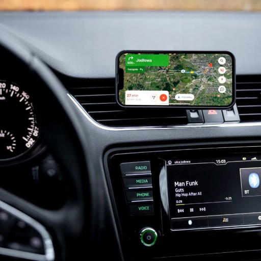 - teraz możemy bezpiecznie odłożyć telefon na zainstalowany uchwyt