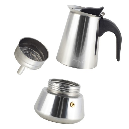 Elegancka i funkcjonalna kawiarka KAMILLE jest urządzeniem, dzięki któremu można bardzo szybko i łatwo zaparzyć esencjonalne i aromatyczne espresso.