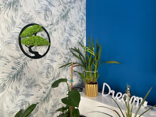 Jeżeli powiesisz taki obraz w pokoju i za jakiś czas okaże się, że mech jest suchy i sztywny oznacza to, że wilgotność w tym pomieszczeniu spadła poniżej 40%.