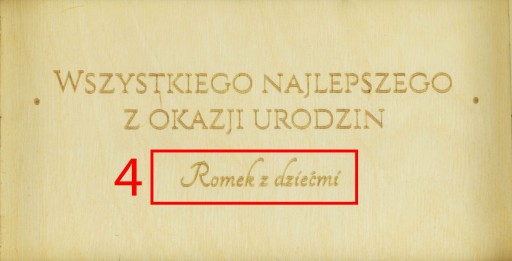 Po dokonaniu zakupu pamiętaj o przesłaniu informacji z tekstem personalizacji.* Czerwoną ramką zaznaczono miejsce podlegające zmianom.