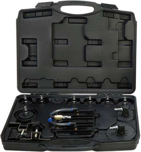 Zestaw do obsługi układu hamulcowego. Urządzenie pozwala jednej osobie w łatwy i szybki sposób dokonać wymiany płynu w układzie hamulcowym oraz sprzęgle hydraulicznym. Zestaw pozwala również szybko odpowietrzyć układ hamulcowy. W komplecie z urządzeniem znajduje się poręczna walizka z zestaw adapterów które umożliwiają obsługę większości systemów hamulcowych.