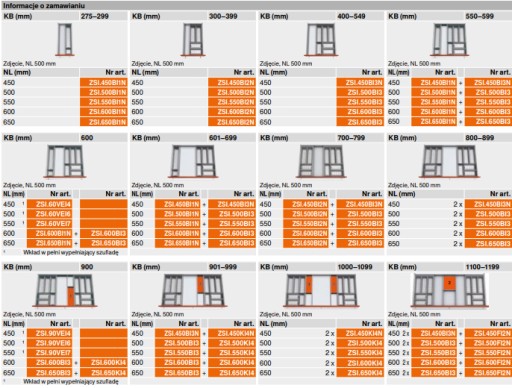 - do szuflady standardowej i szuflady wewnętrznej
