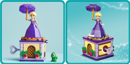 Zachwyć dzieci zestawem LEGO® Disney Wirująca Roszpunka (43214). Zawiera on stojak do zbudowania z ozdobami, kluczem i miejscem na figurkę LEGO kameleona Pascala, minilaleczkę LEGO Roszpunkę i „diamentową” sukienkę, którą można połączyć z parasolem, aby przechowywać minilaleczkę. Zestaw składa się z 89 elementów i jest przeznaczony dla dzieci powyżej 5 roku życia.