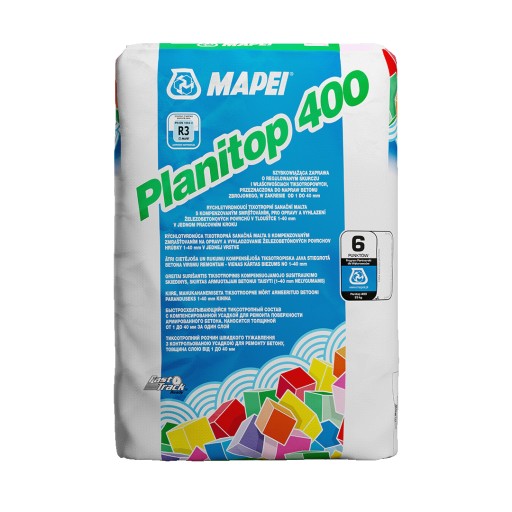 - Planitop 400 jest gotową do użycia suchą zaprawą, składającą się ze specjalnego spoiwa hydraulicznego, drobnoziarnistego selekcjonowanego wypełniacza oraz specjalnych dodatków modyfikujących, produkowaną według specjalnie opracowanej receptury w Laboratorium Badawczym MAPEI.