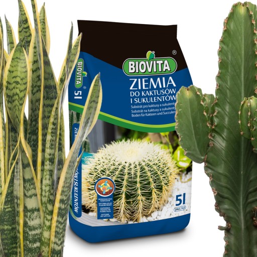 5 litrów wysokowartościowego podłoża z nawozem do kaktusów i sukulentów.