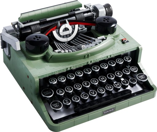 Kolekcjonerski model maszyny do pisania LEGO® Ideas (21327) działa i brzmi zupełnie, jak jego pierwowzór, dzięki czemu przywodzi na myśl nostalgiczne wspomnienia i rozpala ciekawość młodszych fanów, którzy nigdy nie widzieli takiego urządzenia. Model ma dźwignię czcionkową, która podnosi się za każdym razem, gdy naciskasz klawisz z literą i połączona jest z przesuwającą się po kartce papieru karetką. Maszyna ma również wałek, na który można nałożyć prawdziwy papier. Wygląd modelu inspirowany jest klasycznymi maszynami do pisania, jakich używał założyciel Grupy LEGO Ole Kirk Kristiansen.