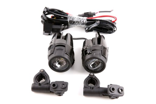 W komplecie bezpiecznik, przewody do akumulatora, wodoodporny włącznik do instalacji na kierownicy oraz uchwyt do gmoli o średnicy od 20.5 do 25 mm.